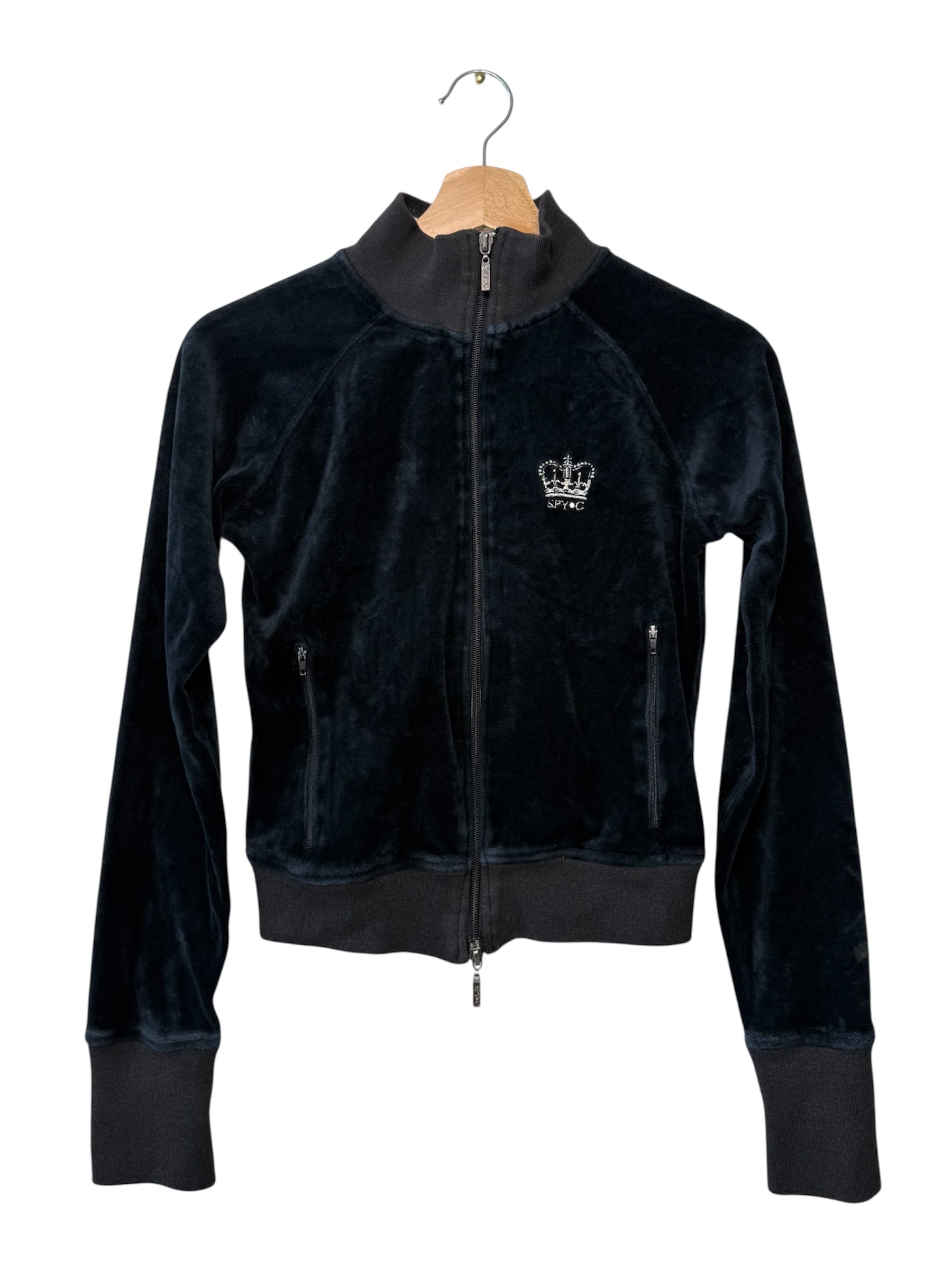 Y2K SPY C Women's Navy Velour Track Zip-Up Jacket