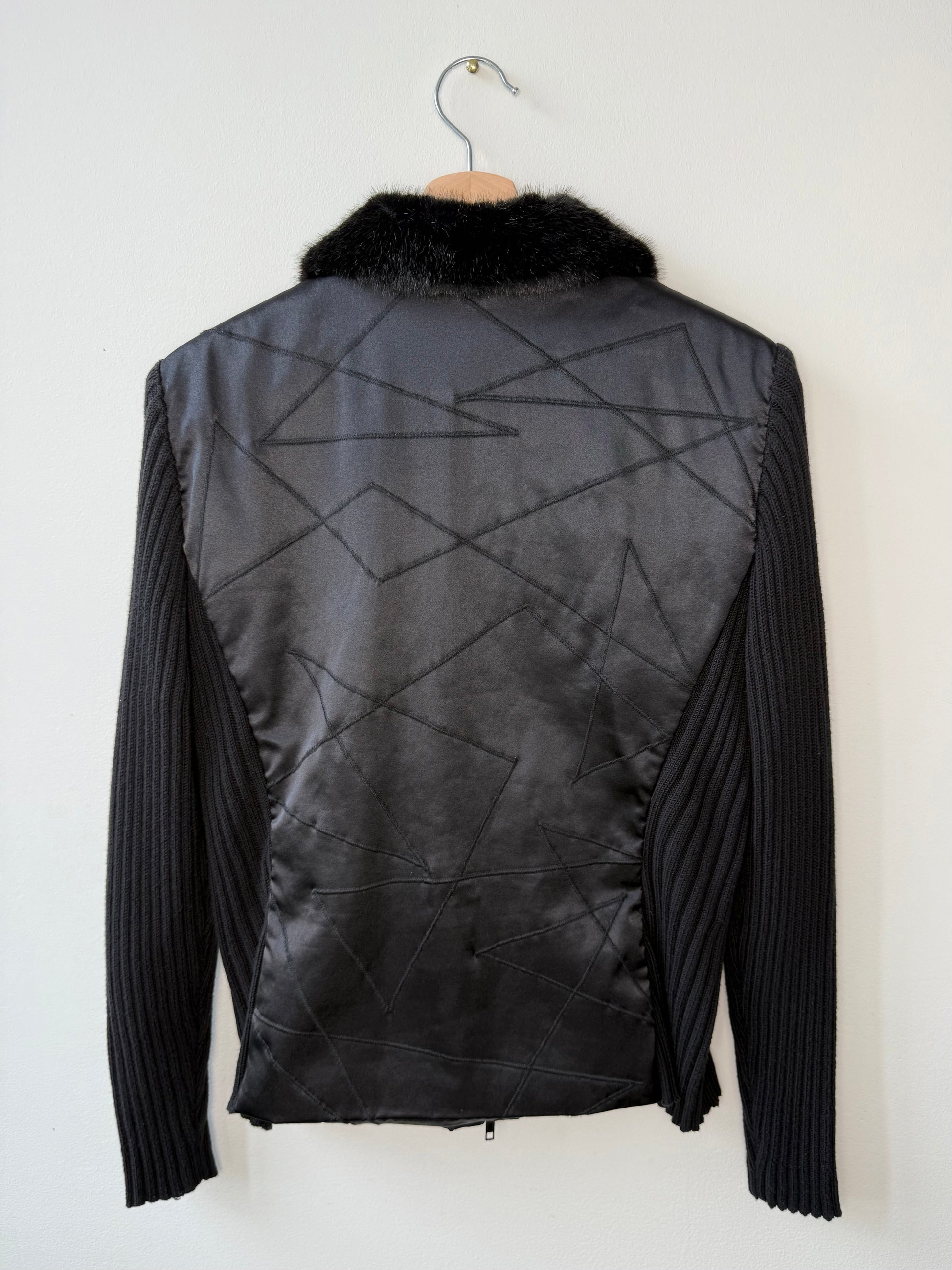 Vintage Bianca Nygard Women's Black Zip-Up Sweater with Fur Collar