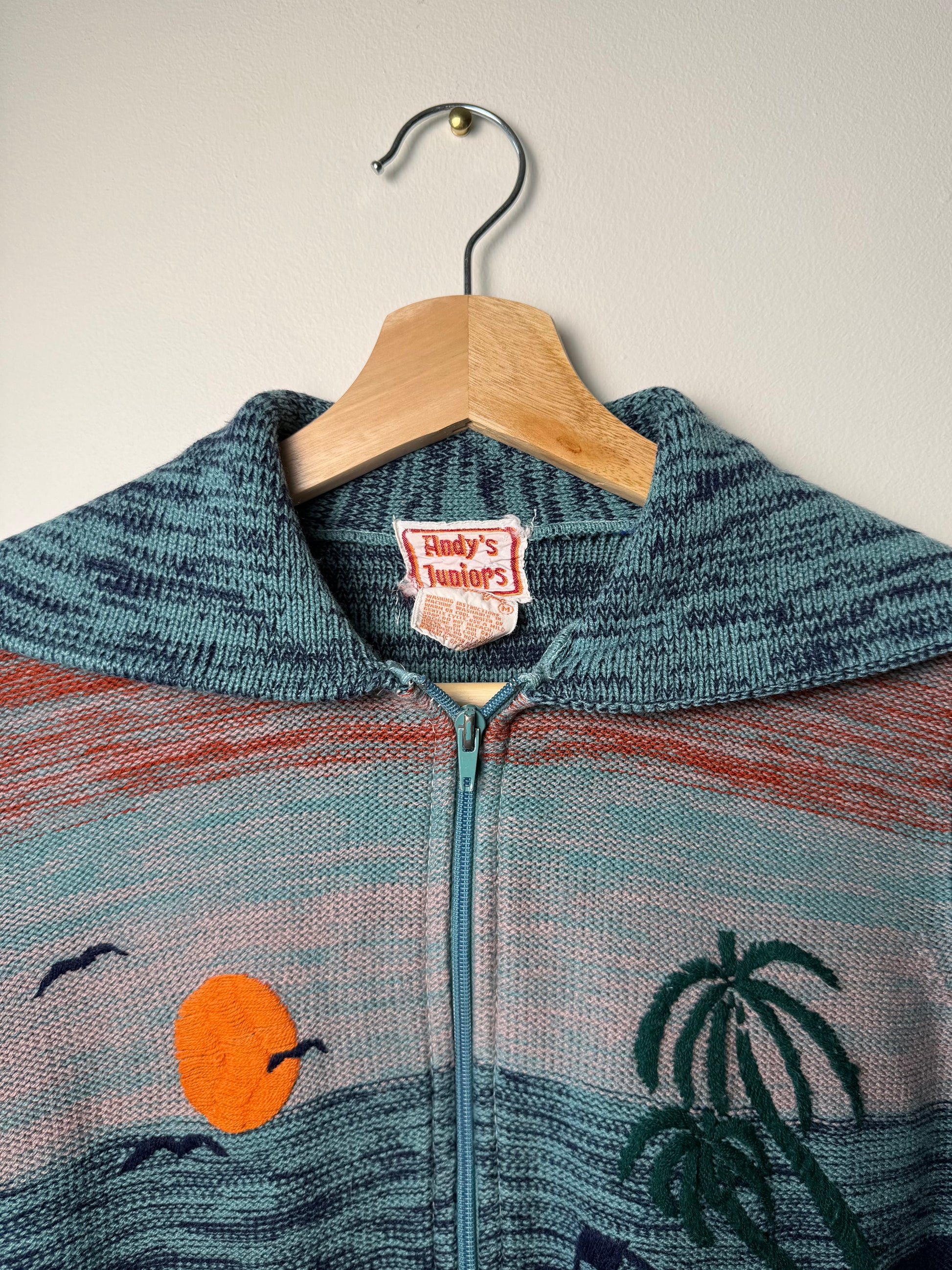 Vintage Andy’s Juniors Women's/Kids' Embroidered Beach & Sunset Zip-Up Cardigan